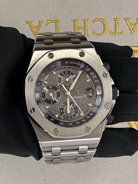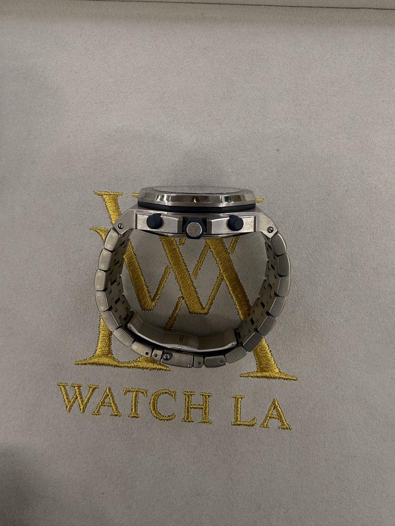 The Audemars Piguet Royal Oak Offshore Chronograph in titanium represents the pinnacle of Swiss watchmaking excellence. This iconic timepiece features a robust 42mm titanium case paired with a sophisticated chronograph movement, delivering precision and durability for discerning collectors. The distinctive octagonal bezel and integrated bracelet define the legendary Royal Oak Offshore aesthetic, while the titanium construction ensures lightweight comfort without compromising strength. With its professional-grade chronograph functionality and water-resistant design, this luxury sports watch seamlessly transitions from boardroom to adventure. Reference 25721TI/O/1000TI/01 stands as a testament to Audemars Piguet's commitment to horological innovation and timeless design.