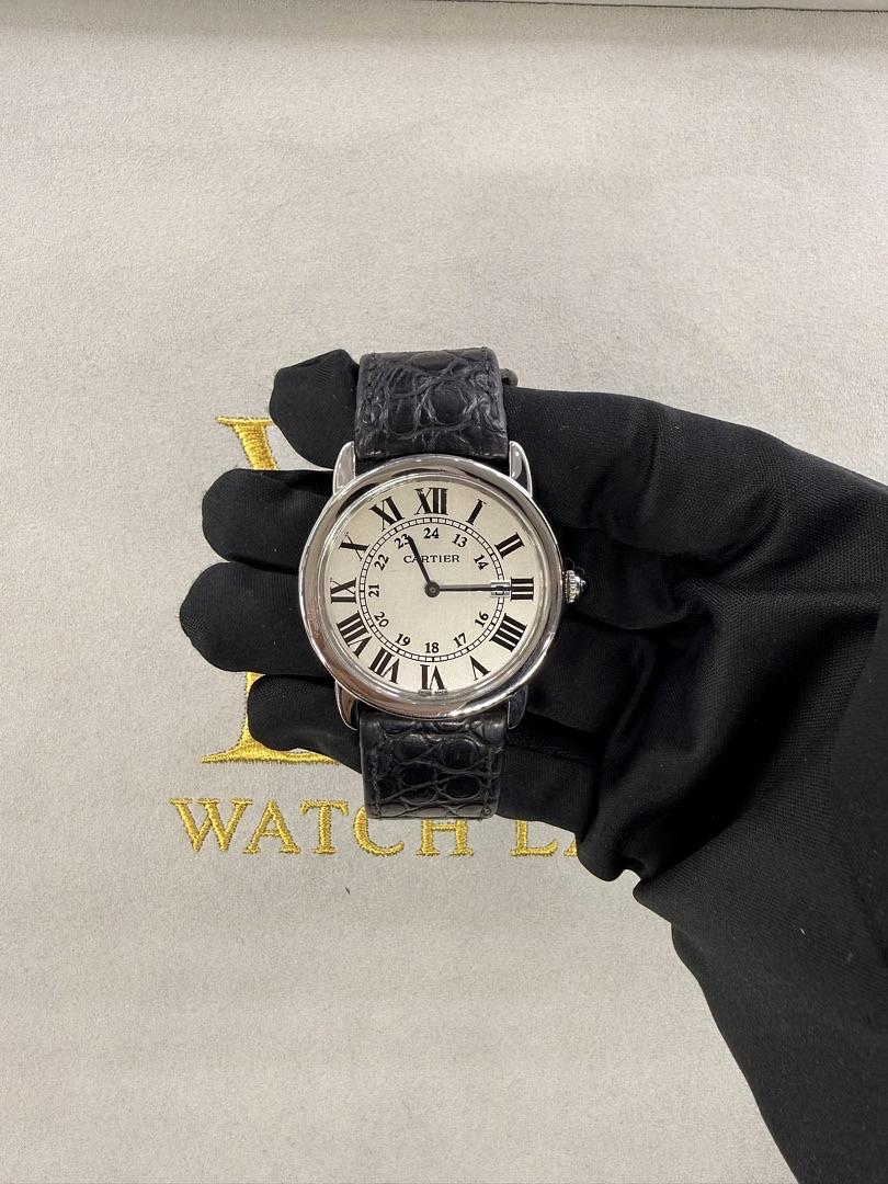 Discover timeless elegance with the Cartier Ronde Must 36mm, a sophisticated timepiece that seamlessly blends classic design with modern sensibility. This iconic watch features a perfectly proportioned 36mm case paired with a sleek black strap, making it an ideal choice for both everyday wear and special occasions. The Ronde Must collection represents Cartier's commitment to refined craftsmanship and enduring style. Model #3603 delivers the luxury and precision you expect from one of the world's most prestigious watchmakers. Whether you're a seasoned collector or seeking your first luxury watch, this versatile timepiece offers understated sophistication that transcends trends and complements any wardrobe.