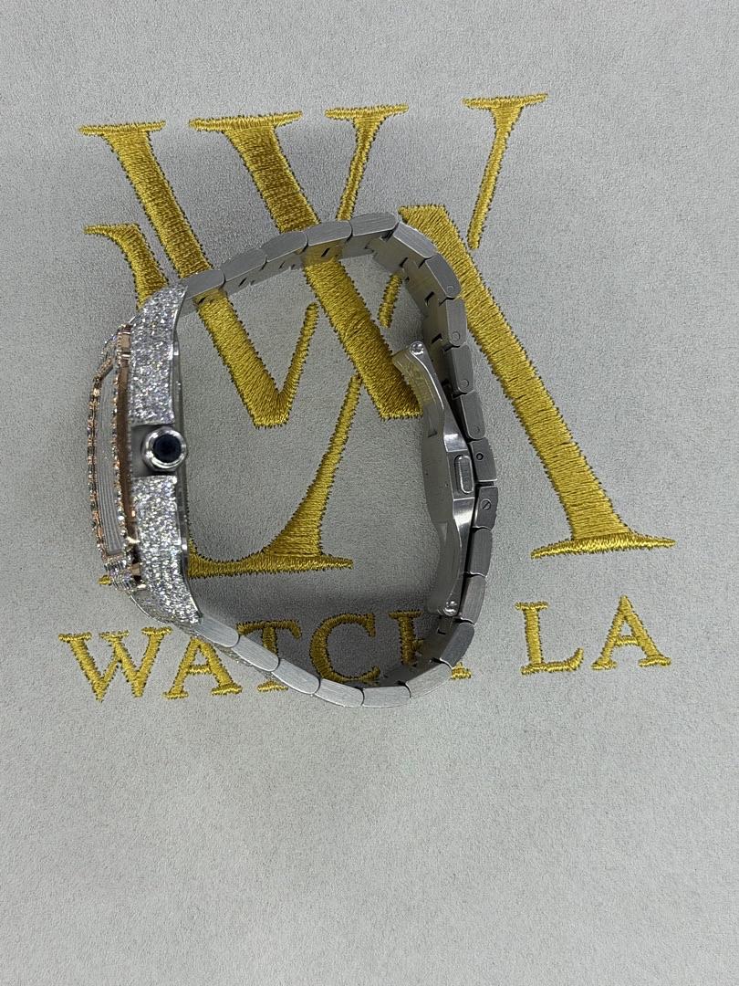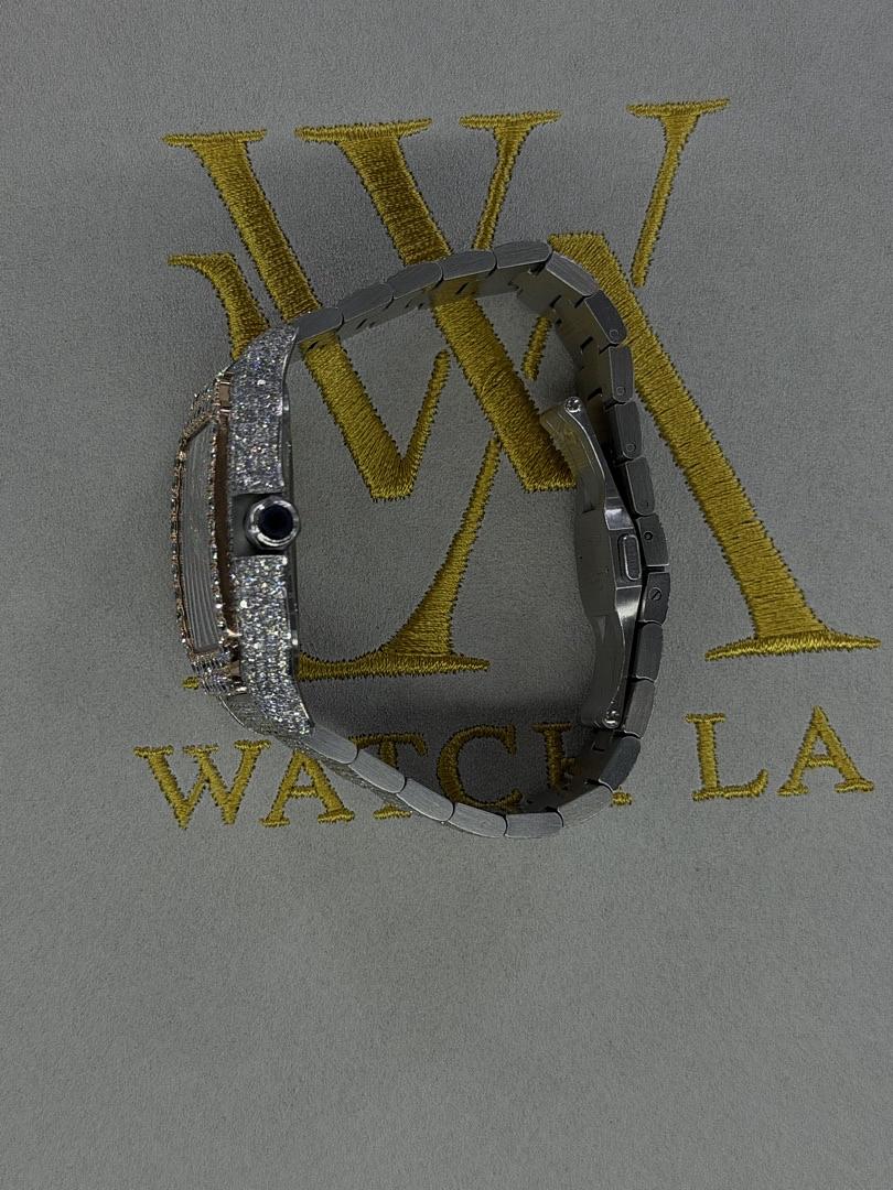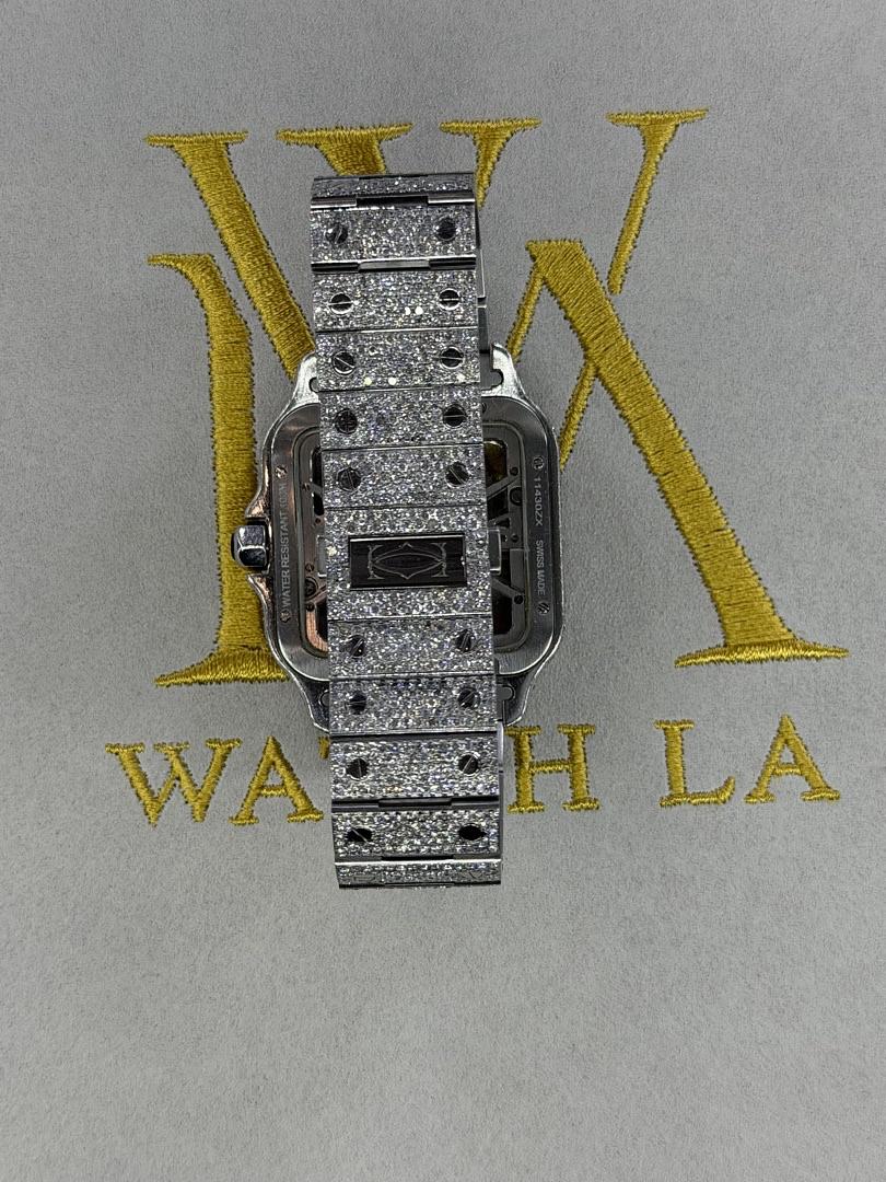 Cartier Santos Skeleton Stainless Steel – Custom Diamond Set